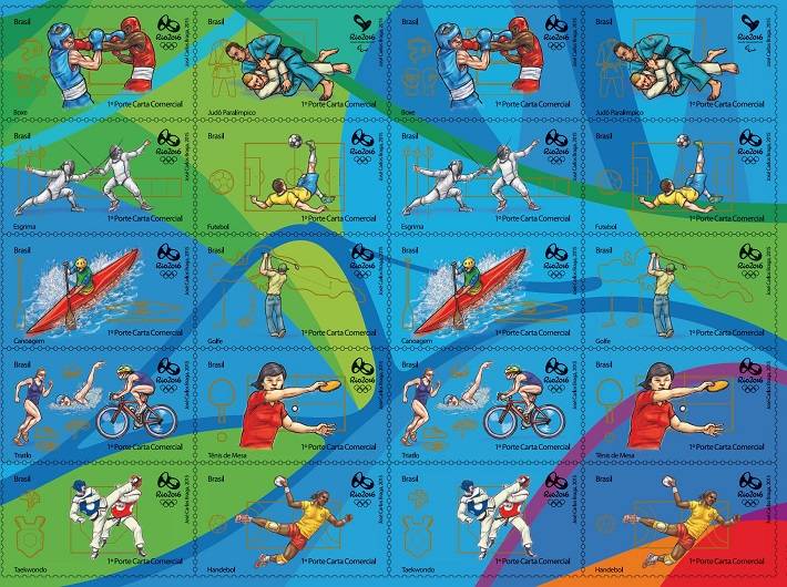 Brazilské olympijské známky vyšly v celkovém nákladu 2,4 milionů kusů. Každá má nominální hodnotu 1,40 brazilských realů. Autorem výtvarného návrhu je José Carlos Braga, který na známkách ztvárnil olympijské i paralympijské sportovní disciplíny. Podle představitelů Brazilské pošty je nyní v jednání další emise olympijských známek, a to s portréty všech brazilských sportovců, kteří na olympiádě v Rio de Janeiru získají medaili.