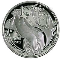 Stejně jako ostatní mince přihlášené v soutěži Mince roku 2016, také italská desetieurová mince má v ražbě rok vydání 2015. Příležitostná mince připomíná 70leté výročí míru v Evropě. Mince byla vydaná v rámci společného evropského programu Europe Star. Tato dobrovolná inciativa Evropské unie započala v roce 2004 a v jejím rámci jsou členské země oprávněné k ražbě platných mincí z drahých kovů věnovaných sdílenému evropskému dědictví.