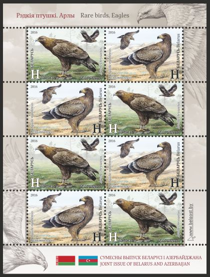 V emisi společných vydání s Ázerbájdžánem vydala letos běloruská pošta dvě známky na motiv ohrožených druhů ptáků. Jedna známka zobrazuje orla skalního, další orla stepního. Zatímco orel skalní není podle hodnocení Mezinárodního svazu ochrany přírody bezprostředně ohrožený, orel stepní patří mezi ohrožené druhy. Plnobarevné známky věrně zobrazující oba vzácné druhy vyšly každá v nákladu 60.000 kusů ve zobrazeném přepážkovém listu po 8 kusech.