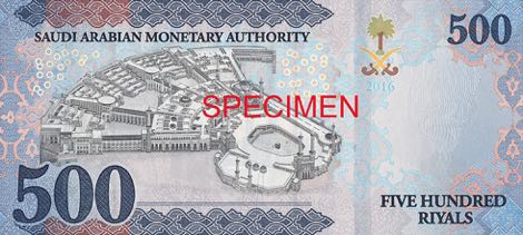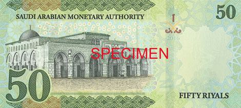 Nová řada bankovek vedle portrétů zmíněných saudskoarabských vůdců svými náměty oslavuje zejména významné náboženské stavby. Dominantou zelené 50rijálové bankovky je Skalní dóm v Jeruzalémě, islámská svatyně nacházejí se v srdci Chrámové hory. Červená 100rijálová bankovka zobrazuje Zelený dóm v Medině, který je vystavěný nad posledním místem odpočinku proroka Mohameda. Bankovka modré barvy o hodnotě 500 rijálů znázorňuje Kábu v Mekce, nejposvátnější poutní místo muslimů.