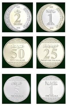 Nové řadě mincí se dostává menší pozornosti než novým bankovkám. Nové saudskoarabské mince jsou ovšem neméně pozoruhodné svým moderním vzhledem, elegantním písmem a dekorativním vzorem vyraženým na jejich okrajích. Mince o nominálních hodnotách 1 a 2 rijály jsou bimetalické a zdobené vzorem ve tvaru měsíce. Drobnější mince o hodnotách 25 a 50 halalasů (1 rijál se dělí na 100 halalasů) jsou vyražené ze žlutého kovu. Mince 1 a 5 halalasů jsou z bílého kovu a zdobené v horní a dolní části mince půlkruhovým vzorem.