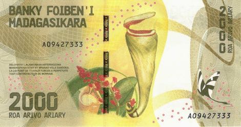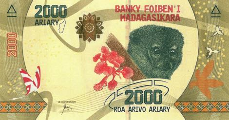 Nejnovější bankovky Madagaskaru jsou věnované tématu národního bohatství, ať už přírodního či kulturního. Bankovky zobrazují místní jedinečnou faunu a flóru, architekturu a turistické zajímavosti. Bankovky nové emise jsou menších rozměrů, než byly původně, aby se tak přiblížily mezinárodním standardům. Další významná změna je množství aktualizovaných bezpečnostních prvků. V souladu se současnými trendy v oblasti bankovek jsou bankovky Madagaskaru opatřené prvky rozpoznatelnými pohmatem, aby byla manipulace s nimi snazší pro zrakově postižené.
