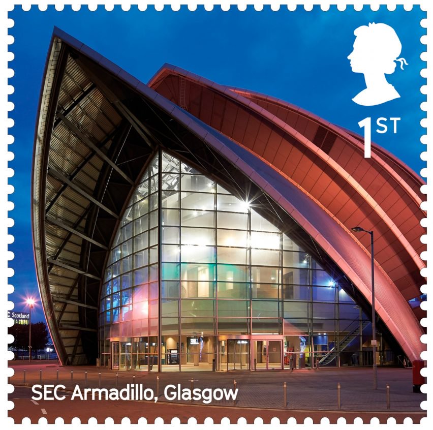 Inovativní budovu parlamentu má i skotský Edinburgh. Postmoderní stavba architekta Enrica Mirallese byla dokončena v roce 2004, čtyři roky po Mirallesově smrti. Vedle Skotského parlamentu nové britské známky vyzdvihují i nejpozoruhodnější skotskou koncertní síň, která se nachází v Glasgowě a díky svému tvaru je známá jako Armadillo („Pásovec“).