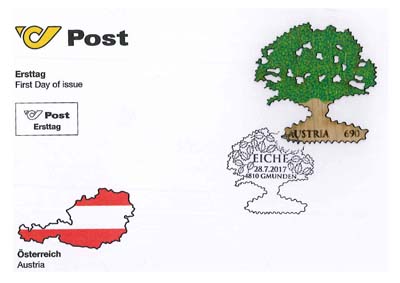 K příležitosti 20. výročí Rakouské federální kanceláře lesního hospodářství vycházejí nové rakouské známky na motiv dubu. Známky jsou zcela jedinečné svým materiálem, kterým je tenký plátek pravého dubového dřeva. Tento sběratelský unikát byl vydaný 28. července 2017 v omezeném počtu 130 tisíc kusů.