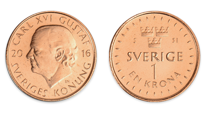Švédská národní banka představila 3. října 2016 nové švédské mince v nominálních hodnotách 1, 2 a 5 švédských korun. Tyto mince budou do poloviny příštího roku platit souběžně se starou sérií mincí. Staré mince se ovšem urychleně stahují z oběhu a přestanou platit po 30. červnu 2017. Mince ze staré série o hodnotě 10 korun nahrazena nebyla a zůstává v platnosti ve své původní podobě. V oběhu jsou momentálně staré mince v celkové hodnotě 2,5 bilionů korun.