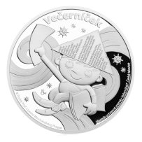 Kreslená postavička Večerníčka je námětem první pamětní mince vydané v této emisi. Mince vyšla ve zlaté a stříbrné variantě, a to v limitovaném nákladu 250 kusů u zlaté mince a 500 kusů u mince stříbrné. Zlatá mince má nominální hodnotu 5 dolarů, stříbrná je o nominální hodnotě 2 dolary. Obě mince vyšly v roce 2015, ale večerníčková emise pokračuje ještě v roce 2016. Mezi další postavičky připomínané na mincích patří Bob a Bobek, Víla Amálka či Maxipes Fík.