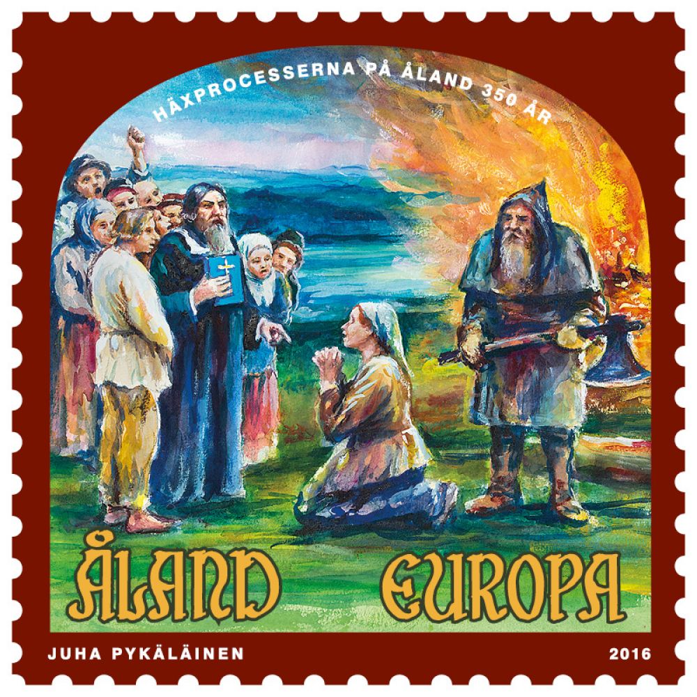 Známka ve výrazných barvách z dílny designéra Juhy Pykäläinena vyšla v roce 2016 k připomenutí uplynutí 350 let od započetí honu na čarodějnice na Ålandách. Na Ålandách vypuknul hon na čarodějnice dříve než ve Švédsku i Finsku a v šedesátých létech sedmnáctého století zde bylo popraveno sedm žen obviněných z čarodějnictví. Známka v nominální hodnotě 1,30 € zobrazuje obviněnou před popravou.