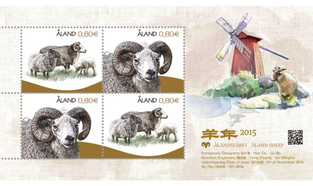 Známkový aršík „Ålandské ovce“ se dvěma variantami známek v nominální hodnotě 0,80 € vyšel v roce 2014. Známky mají rozměry 44,2 × 35,8 mm, aršík je o rozměrech 170 × 95 mm. Design aršíku byl navržen skupinou studentů, kteří se učili od švédského rytce Martina Mörcka a zvítězili v soutěži o nejlepší návrh zobrazující ålandskou ovci, druh vyskytující se pouze na Ålandách. Aršík vyšel k příležitosti roku ovce 2015.