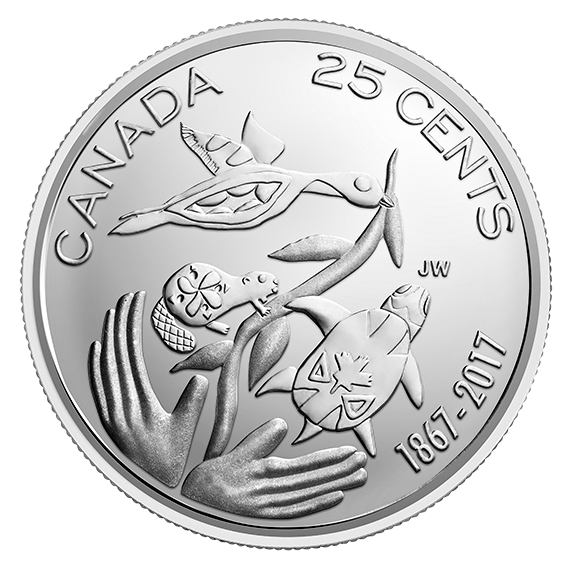 Vedle svítící mince obsahuje sada pamětních mincí k výročí Kanady také zlatou minci o nominální hodnotě 1 dolar. Tato mince vzdává hold železnici, která hraje v dopravě po rozlehlé zemi zásadní roli. Parní lokomotiva zobrazená na minci je doplněná významnými stavbami nacházejícími se na kanadských železničních trasách. Emisi doplňují stříbrné mince o hodnotách 5, 10 a 25 centů. Pěticentová mince zpracovává jeden z tradičních symbolů Kanady, kterým je bobr. Deseticentová mince svým motivem holubice držící v zobáčku javorový list představuje Kanaďany jako mírumilovný národ. Poslední mince, o hodnotě 25 centů, se věnuje ekologickému námětu a zobrazuje ruce, ze kterých vyrůstá zelená rostlina obklopená zvířaty tradičně spojovanými s Kanadou.